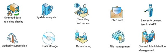 The system can realize real-time monitoring, reviewing, case filing, notification, document making and management of overload vehicles, authority management of overweight control sites and law enforcement personnel, using AI to complete big data statistical analysis, provide strong support for decision-making, improve the efficiency of overload control, promote fair law enforcement, and play a positive role in preventing and reducing overweight and overloaded freight vehicles, protecting roads, and ensuring safe operation.